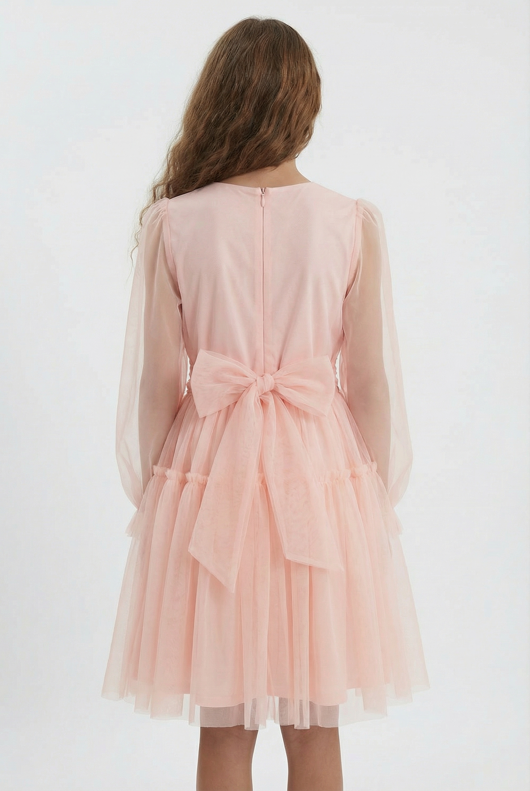 Holly róż morelowy sukienka tiulowa z długim rękawem dla dziewczynki